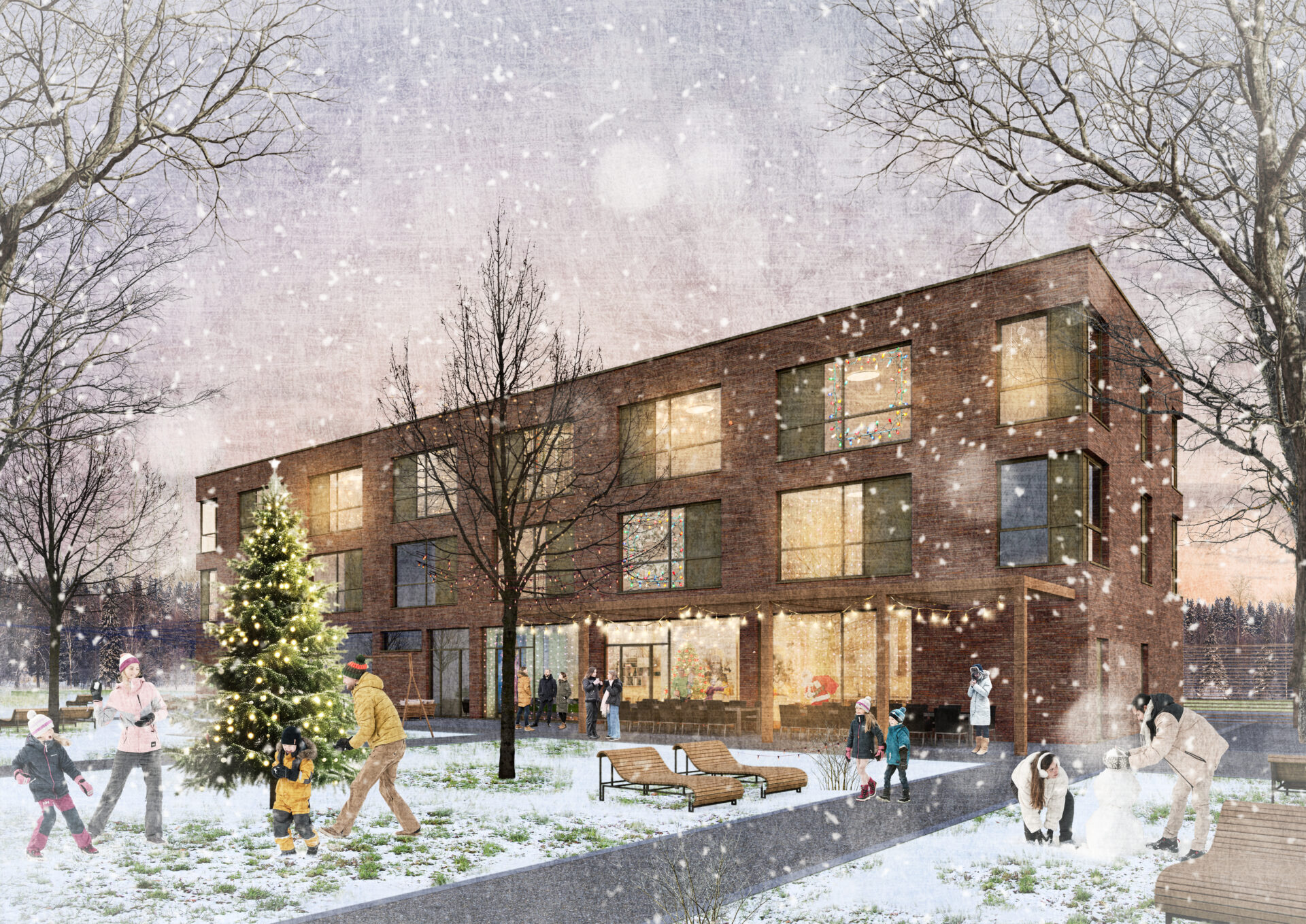 Elternhaus Winterbild 241031 01 mit Weihnachtsbaum